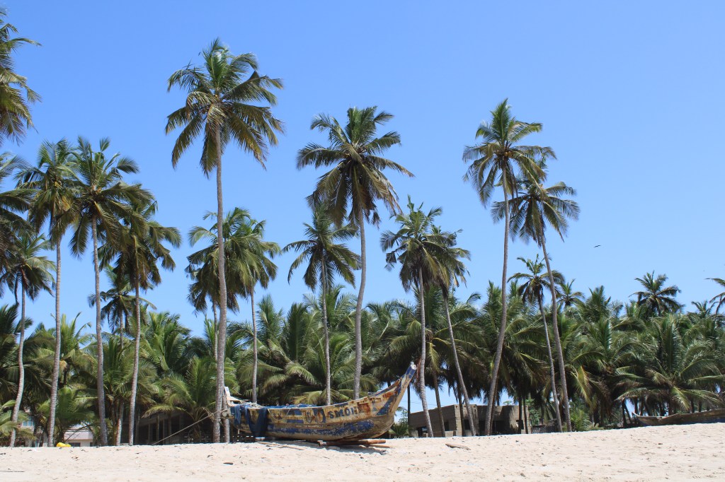 Am nächsten Tag fand die Geburtstagsfeier von Katrin, einer der IGI-Freiwilligen, in Winneba statt. Mathis, Ruben und Caro wollten hinfahren. Sie hatten sich gemeinsam mit ein paar anderen Leuten von unserer Entsendeorganisation ein Ferienhaus gebucht. Winneba liegt etwa zwei Autostunden entfernt von Accra am Meer und ich wollte mir den Ort sehr gerne einmal anschauen. Da ich ja aber nicht so der Partytyp bin und eh keine Umbuchung im Ferienhaus mehr möglich war, habe ich mir kurzerhand alleine ein Zimmer in einer Lodge gebucht. Am Freitag waren wir noch in einem großen Malcom-Supermarkt in Accra, weil die anderen ihre Einkäufe fürs Wochenende erledigen wollten. Ich habe mir bei der Gelegenheit ein paar Tennisbälle zum Jonglieren gekauft, und getrocknete Linsen für einen Brotaufstrich.