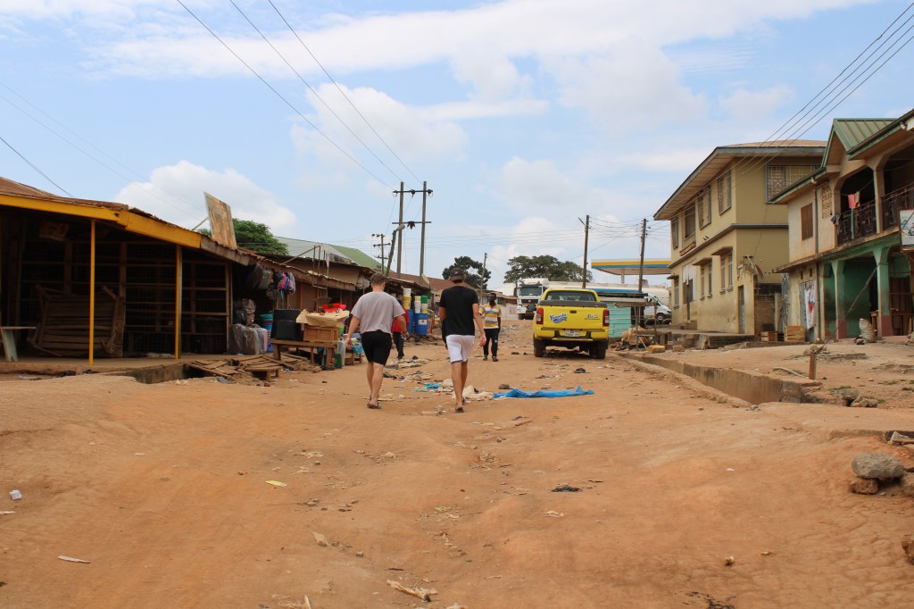 Anschließend haben wir einen Spaziergang gemacht. Und mir ist es doch relativ schwer gefallen, die Armut hier zu ertragen. Die Häuser sind meistens nur einstöckig, sehr viele schon baufällig. An der Hauptstraße stehen Stand an Stand, aber besonders viel werden die Leute damit wohl nicht verdienen. Ich habe ein richtig schlechtes Gewissen, weil ich ihnen unter die Nase reibe, dass ich mehr Geld habe. Und auch, weil für mich das alles neu und aufregend ist, als ob ich einen Zoo besuchen würde. Außerdem fallen wir natürlich auf, weil in Offinso ausschließlich Schwarze wohnen. Die Kinder rufen uns immer „Hallo, hallo, Bonifada“ hinterher, was übersetzt weißer Priester bedeutet. Und wir werden häufig angesprochen, wo wir herkommen oder wie es uns geht. Eigentlich ist das natürlich sehr lieb gemeint, aber mir ist diese ganze Aufmerksamkeit unangenehm. Als ob ich ein Promi oder Held wäre.