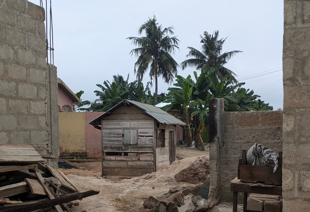 Dann begann die erste „Orientierungseinheit“. Zacch ist wie gesagt der Leiter der „Offinso Grassroots Community Foundation“ und der Schulleiter der Stepping Stones Academy. Sein Haus liegt mit auf dem Gelände der Schule und dort wohnt er mit seiner Frau Susanna und seinen vier Kindern. Außerdem leben noch andere Jugendliche bzw. junge Erwachsene dort, die nach meinem Wissensstand von Zacch die Schulbildung und Unterkunft finanziert bekommen. Das sind vielleicht noch so sieben bis zehn andere. Das Haus ist verhältnismäßig luxuriös, denn es gibt eine Toilette und Dusche mit fließendem Wasser. Die Mädchen, die hier wohnen, kochen uns mittags und abends eine warme Mahlzeit, die eigentlich immer aus Reis, Nudeln und einer Tomatensoße mit Ei besteht. In den nächsten Tagen muss ich die mal fragen, ob ich ihnen helfen kann, denn ich finde es irgendwie komisch, dass wir hier so bedient werden. Aber immerhin wissen wir mittlerweile, wie man den Abwasch macht.