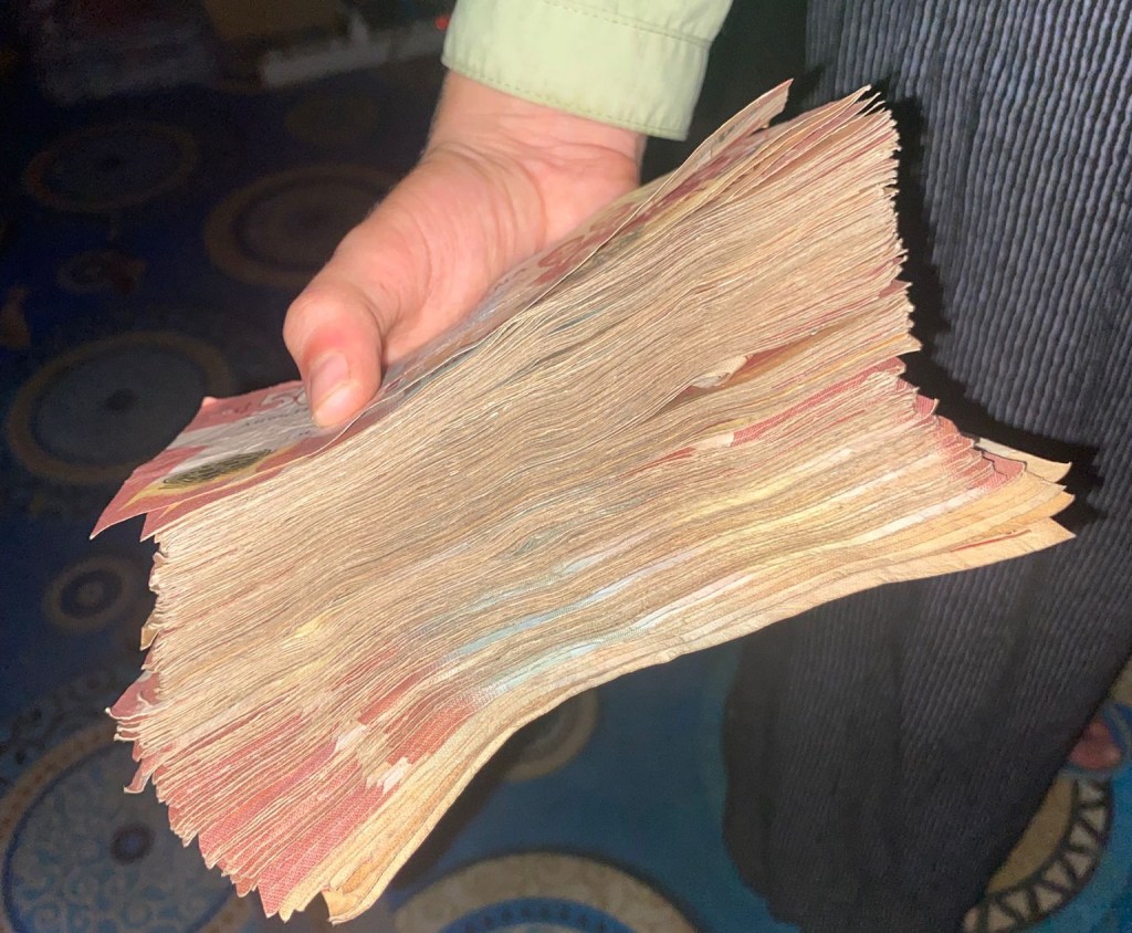 Ich hätte gerne einmal 50.000 Cedi in der Hand gehalten, aber die 12.000 waren auch schon ein ganz schöner Haufen.