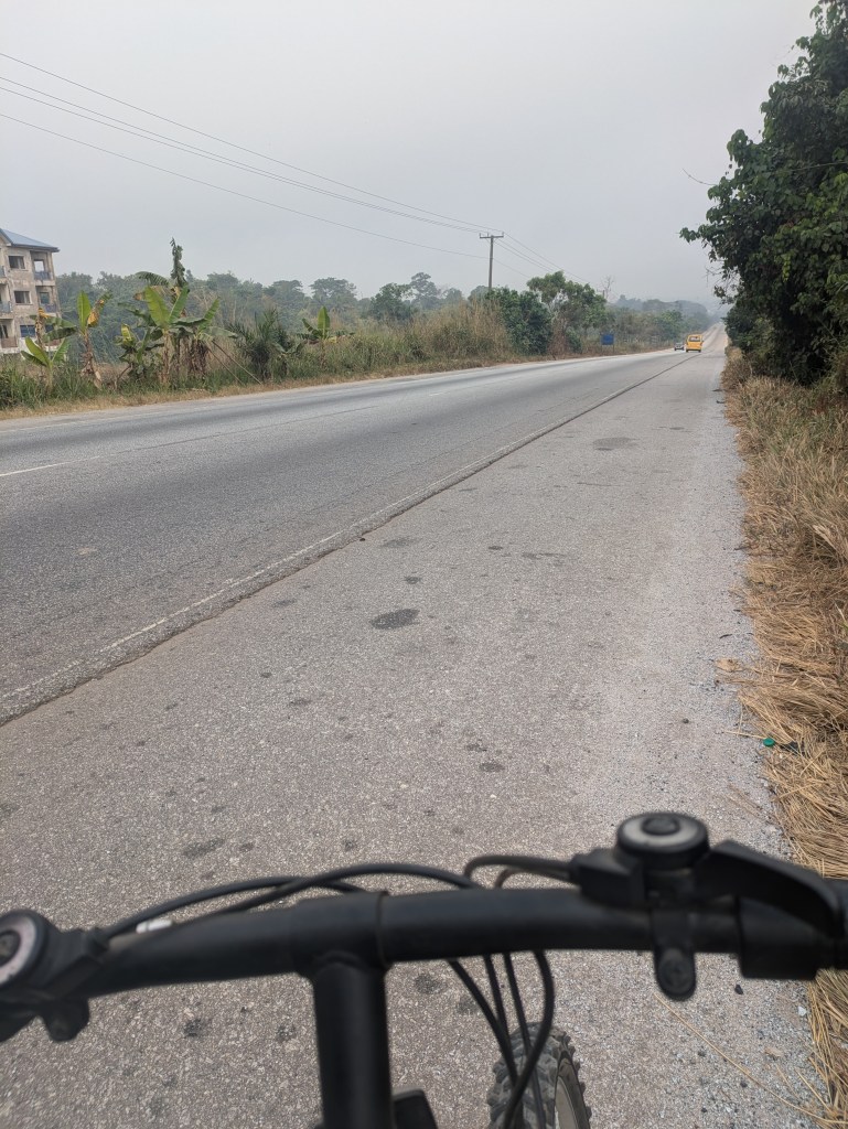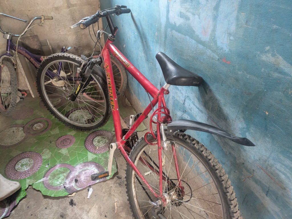 Uuund ich habe mir ein Fahrrad gekauft am Sonntag. Damit bin ich diese Woche jeden Tag zur Schule gefahren, das dauert so ungefähr 50 Minuten. Es ist ein Gebrauchtes und nicht so hundertprozentig fit: In beiden Reifen sind Achten und deshalb schleifen die Bremsen ein bisschen und die Gangschaltung ist nicht richtig eingestellt, sodass die Kette raus rutscht, wenn man zu hoch schaltet. Aber mittlerweile habe ich mich daran gewöhnt und es tut richtig gut, wieder Fahrrad zu fahren. Hier ist es relativ bergig, sodass man richtig ins Tal schießen kann. Und qualvoll bergauf strampeln muss.