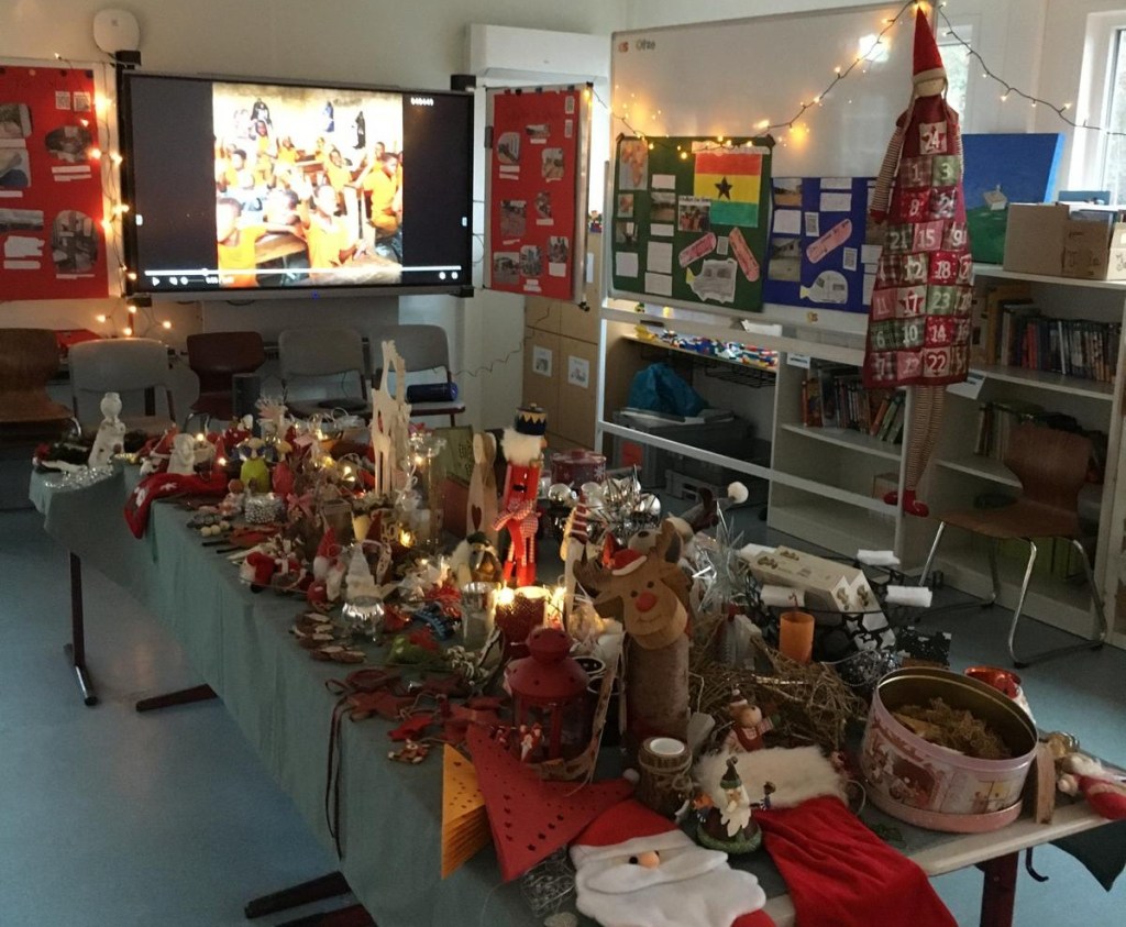 Und dann haben wir uns noch unserem Spendenprojekt für den Schulbus gewidmet. Meine Oma (Antje) war ja bis vor kurzem die Schulleiterin der Grundschule in Otze und hat durch freiwillige Tätigkeiten noch guten Kontakt dorthin. Sie hat sich dafür eingesetzt, dass die Einnahmen der Weihnachtsschule gespendet werden. Diese fand am letzten Freitagnachmittag statt und es gab wie jedes Jahr Kaffee und Kuchen, verschiedene Bastelangebote und Vorführungen. Antje hatte sich außerdem um einen Adventsflohmarkt gekümmert.