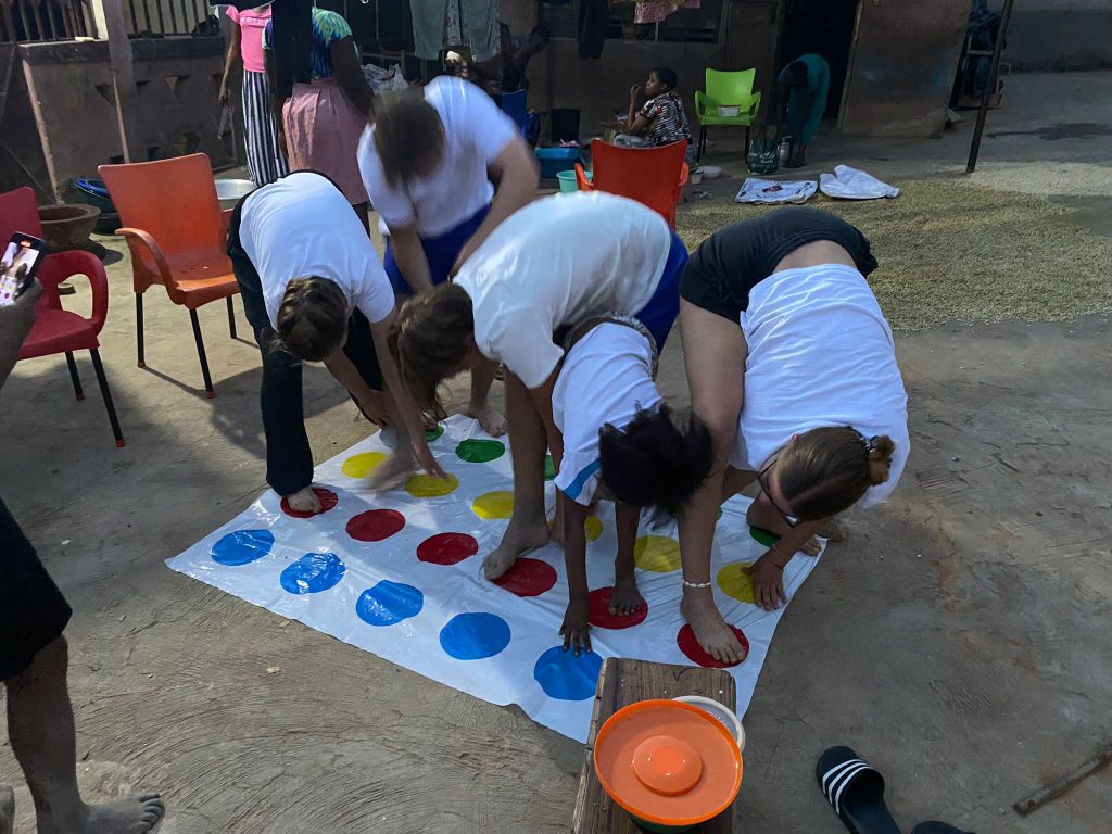 Aber an diesem Tag haben wir aber ein bisschen was mit den anderen Mädchen gemacht: Die Mädels haben uns ein Seilspring-Spiel gezeigt und anschließend haben wir uns noch unterhalten. Die älteste Tochter von Zacch, Anne, ist 14 Jahre alt und hat uns von ihren Hobbies berichtet: Schwimmen, Schachspielen und Fußball. Mit Johanna, die etwas jünger ist, haben wir uns schon vorher etwas angefreundet: Sie hat uns die Schule gezeigt und wir haben gemeinsam mit Oliver, ihrem Bruder, Memory, Twister und Fußball gespielt. Alle drei sind total offen und neugierig. Hier in der Nähe gibt es ein Hotel mit einem Pool, da können wir bestimmt mal zusammen hinfahren.